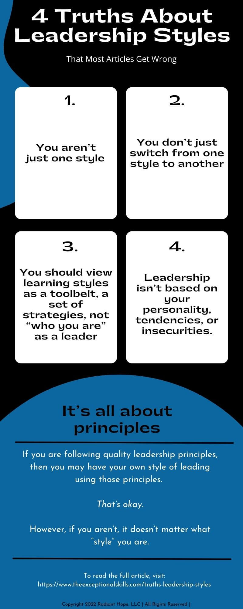Here’s one of the big truths: leadership isn’t based on your personality, your tendencies, or your insecurities. It’s based on principles.